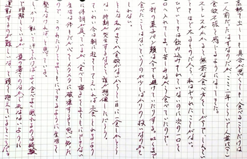 そんな私がまさか食欲がないからと一日に一食しかとらない時期が発生するなどと誰が想像しただろう。