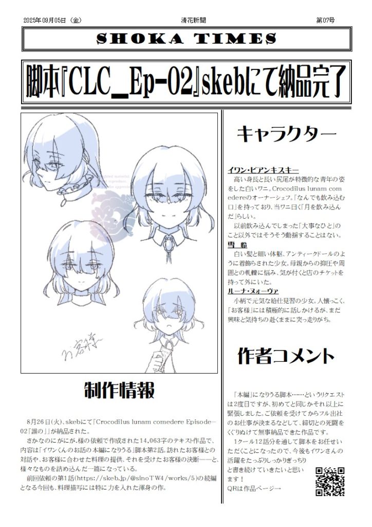 Skebの納品が完了したので、ポートフォリオサイトに納品報告をアップしました。