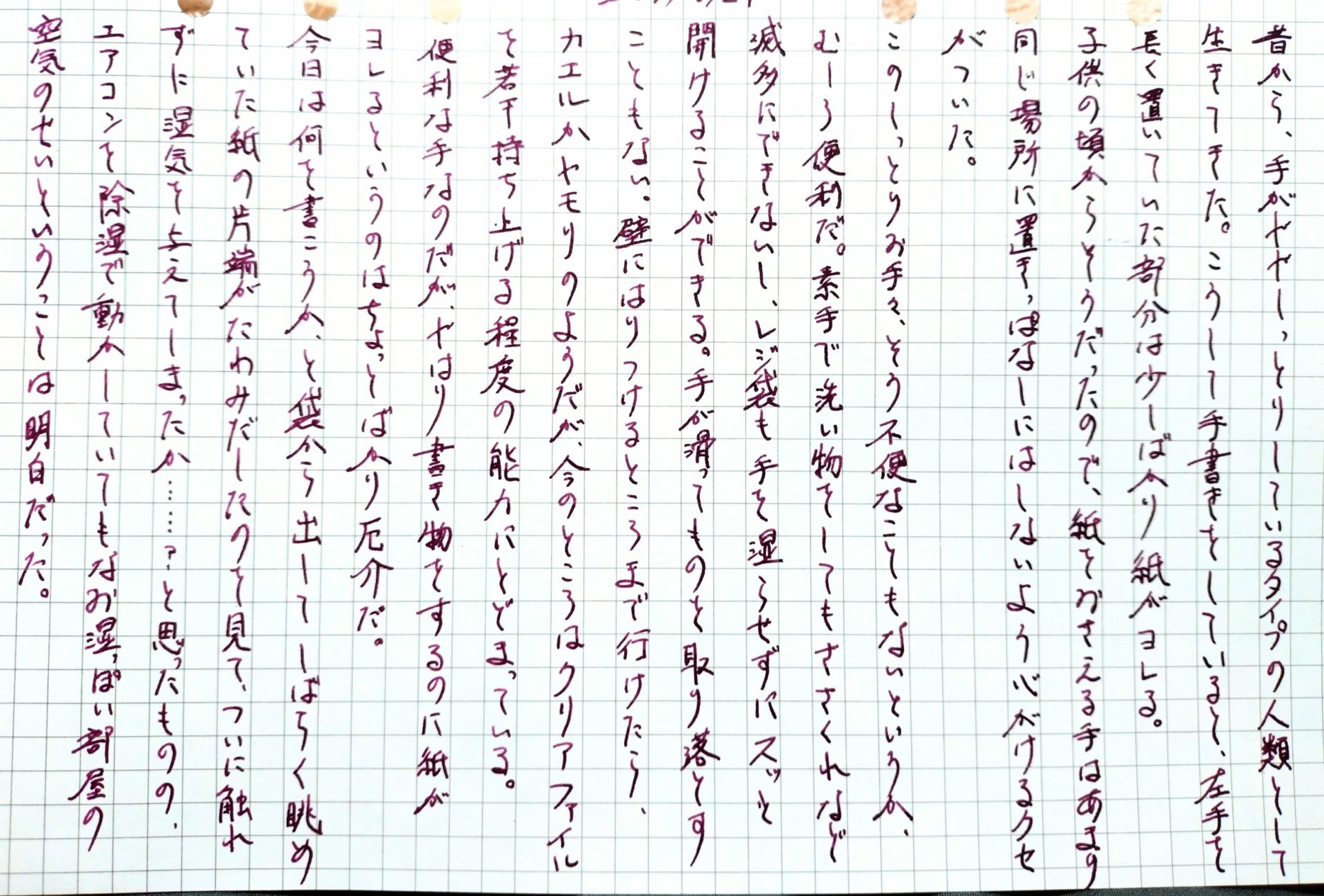 昔から、手がややしっとりしているタイプの人類として生きてきた。こうして手書きをしていると、左手を長く置いていた部分は少しばかり紙がヨレる。