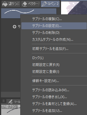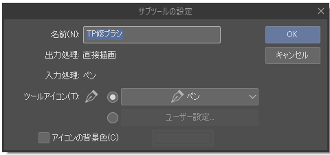 サブツールの設定から、ペンの名前を変更します。別にしなくてもいいけどわかりやすいので。