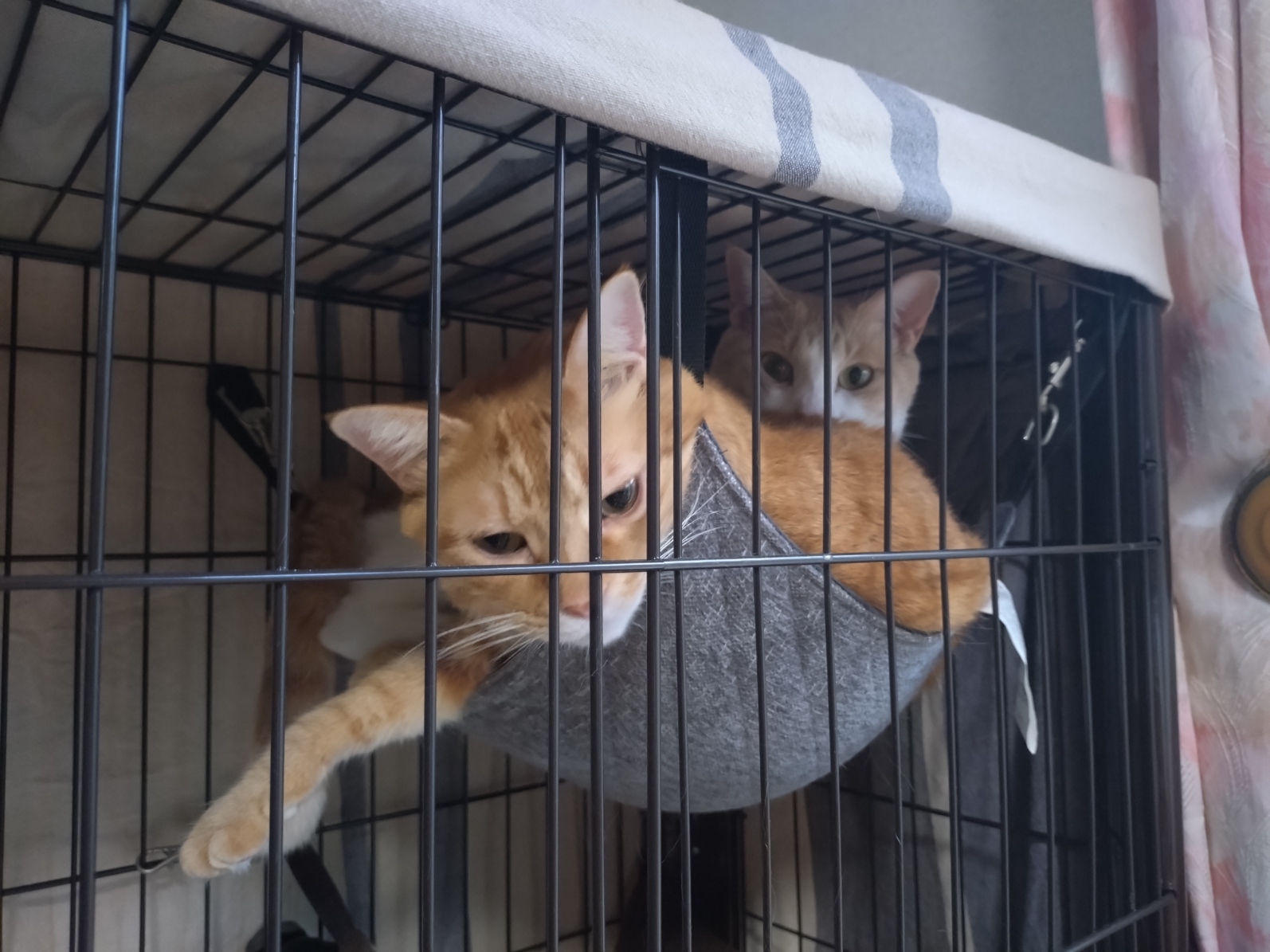 アイキャッチは耐荷重5㎏のハンモックに5㎏と5.5㎏で一緒に乗っかる実家の猫兄弟です。仲いいね君たち。