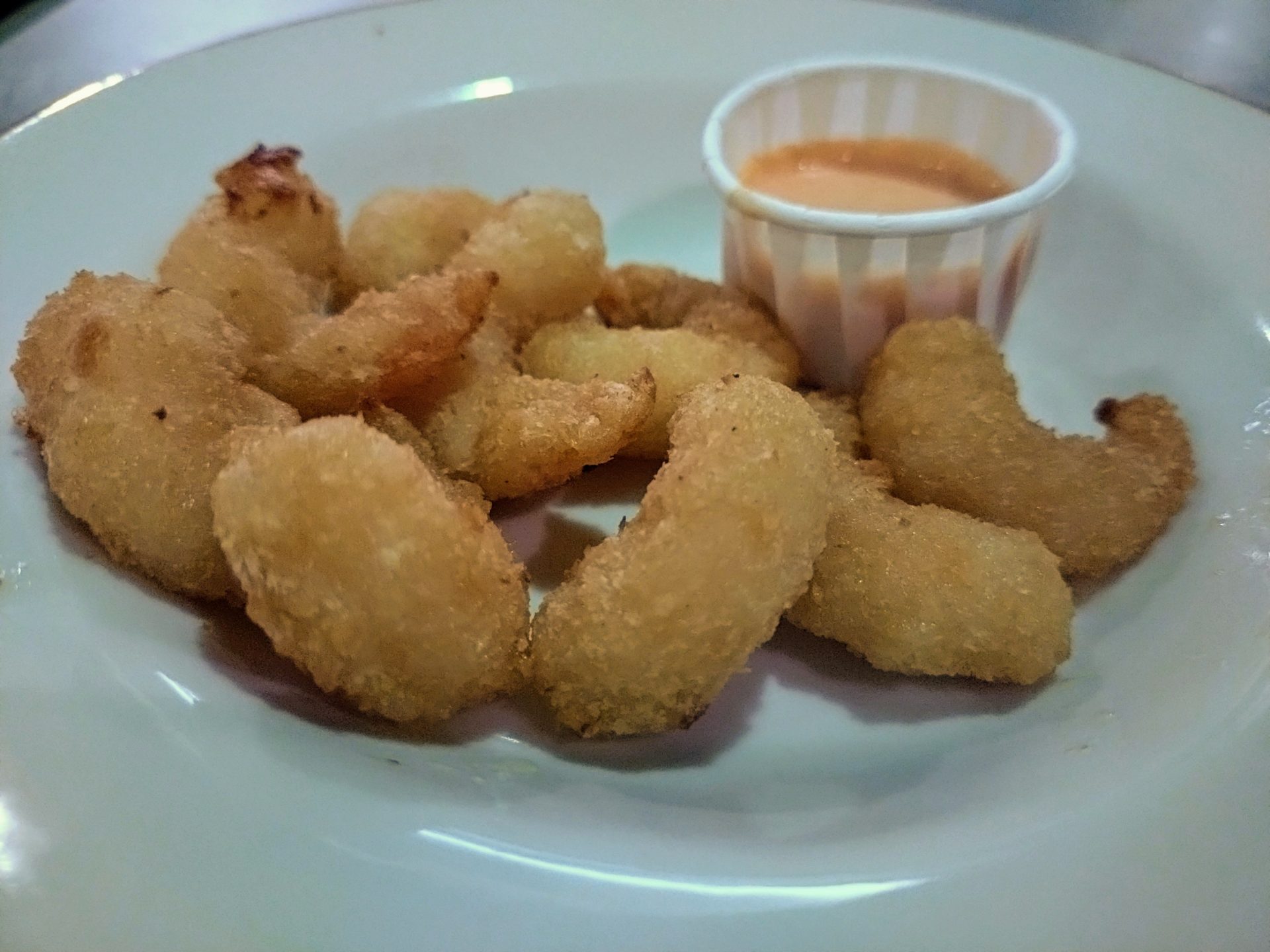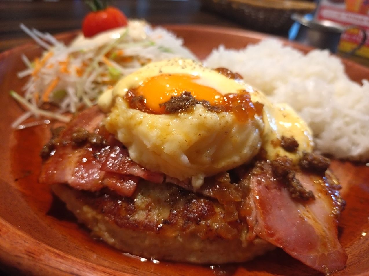 ハンバーグと辛味チキン、ポップコーンシュリンプの盛り合わせ(ミックスグリル)にしようか迷ったのですが、さすがに重いか……? と思ってハンバーグとポップコーンシュリンプそれぞれ注文することに。野菜のソースが食べたかったというのもある。