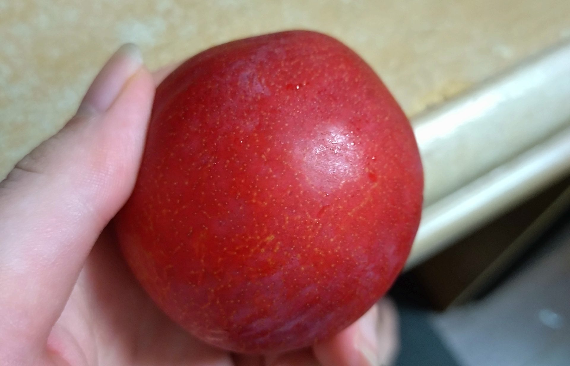 あんまり鮮やかだったので、かじった断面を写真に撮ってしまいました。