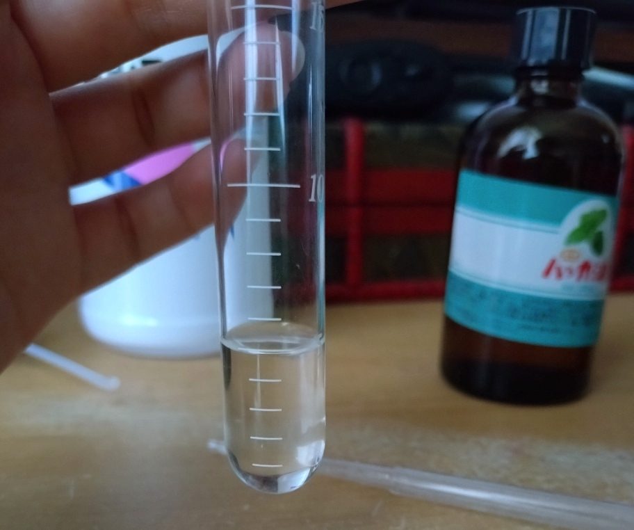 試験管を振って、ハッカ油とエタノールを攪拌します。