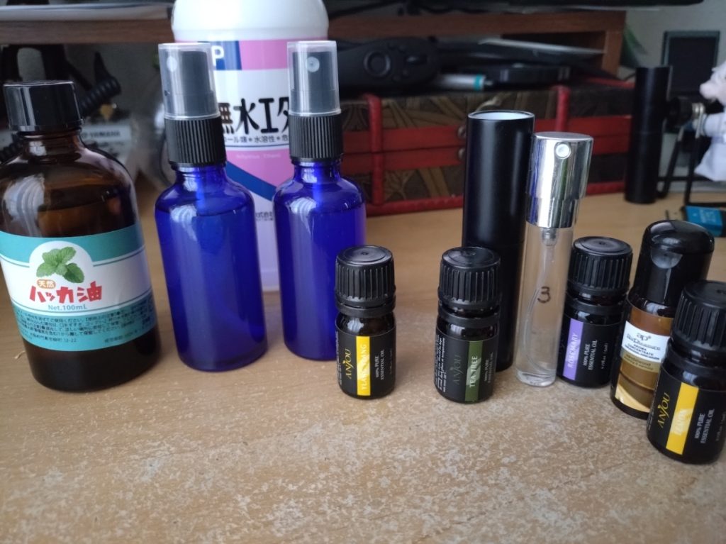 精油のボトル、口が緩くて「トトトトッ」と出てしまう子もいれば、ひっくり返しても出てこなくて振らないと液が落ちない子もいて難儀でした。また「ウワーッ」してしまうところだった。